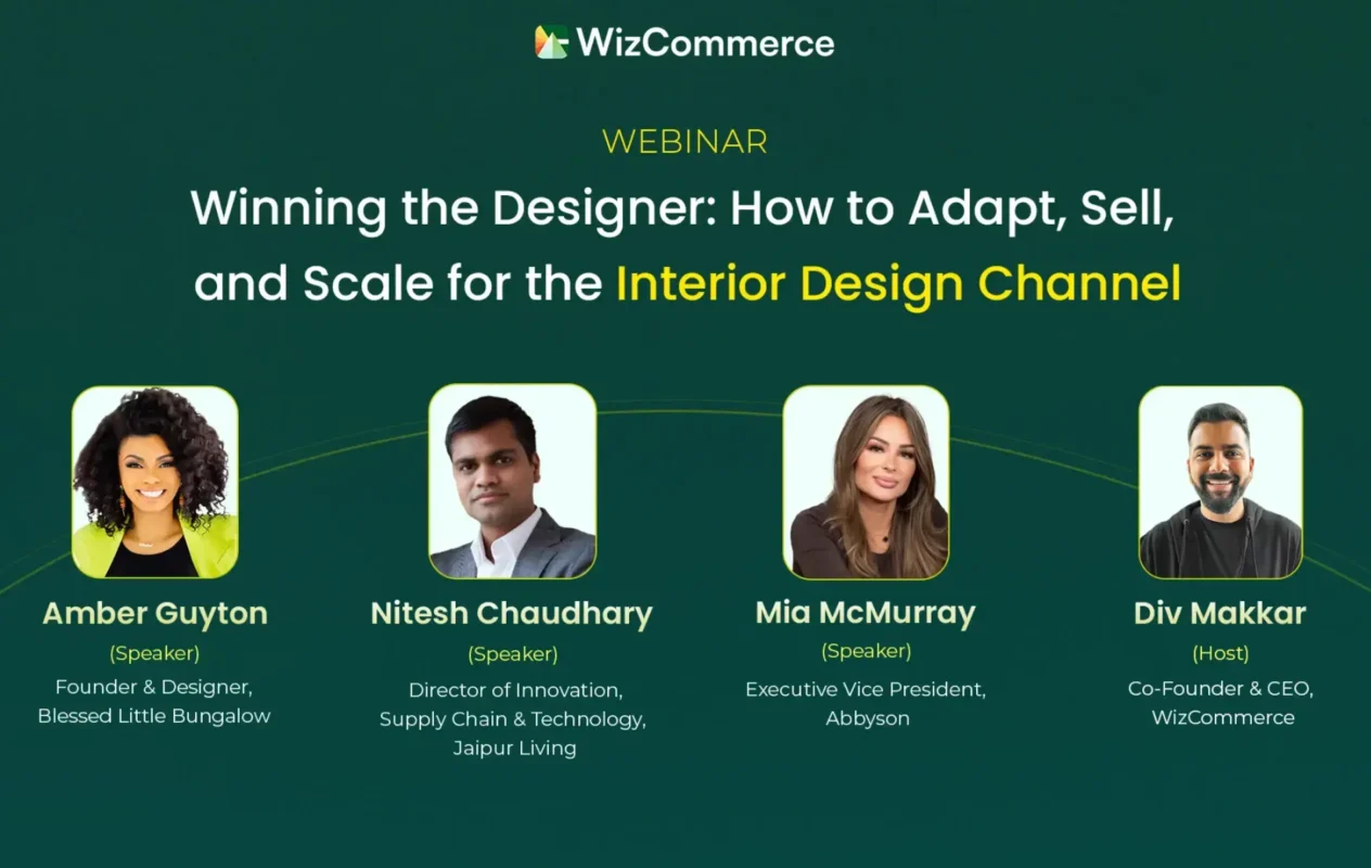 16 May General Winning the designer: A new playbook for wholesale growth September 16, 2025 By Shreya Srivastava 0 comments Hosted by WizCommerce | Featuring experts from Jaipur Living, Abbyson, and Blessed Little Bungalow In today’s wholesale landscape, i...Continue reading