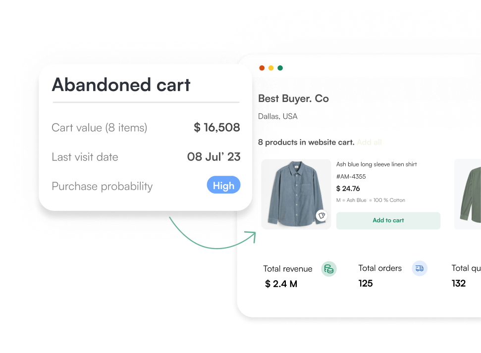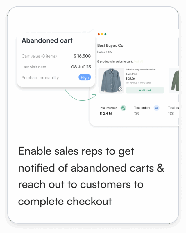 Enable sales reps to get notified of abandoned carts & reach out to customers to complete checkout