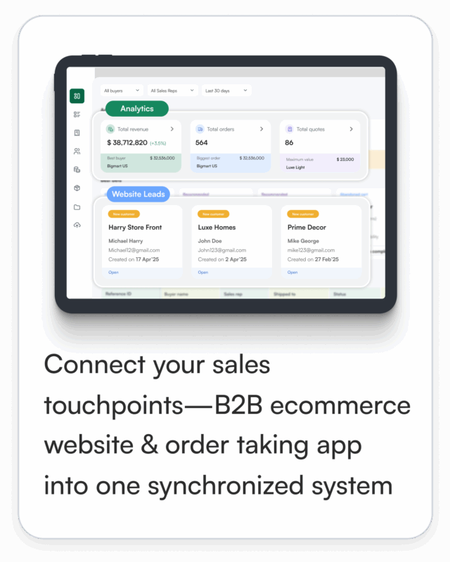 Connect your sales touchpoints—B2B ecommerce website & order taking app into one synchronized system