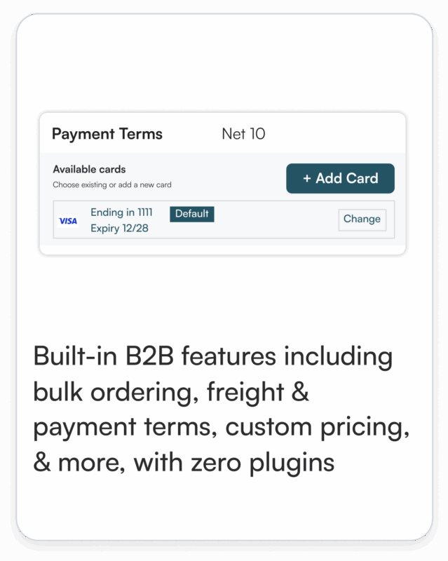 bulk ordering, freight & payment terms, custom pricing, & more, with zero plugins