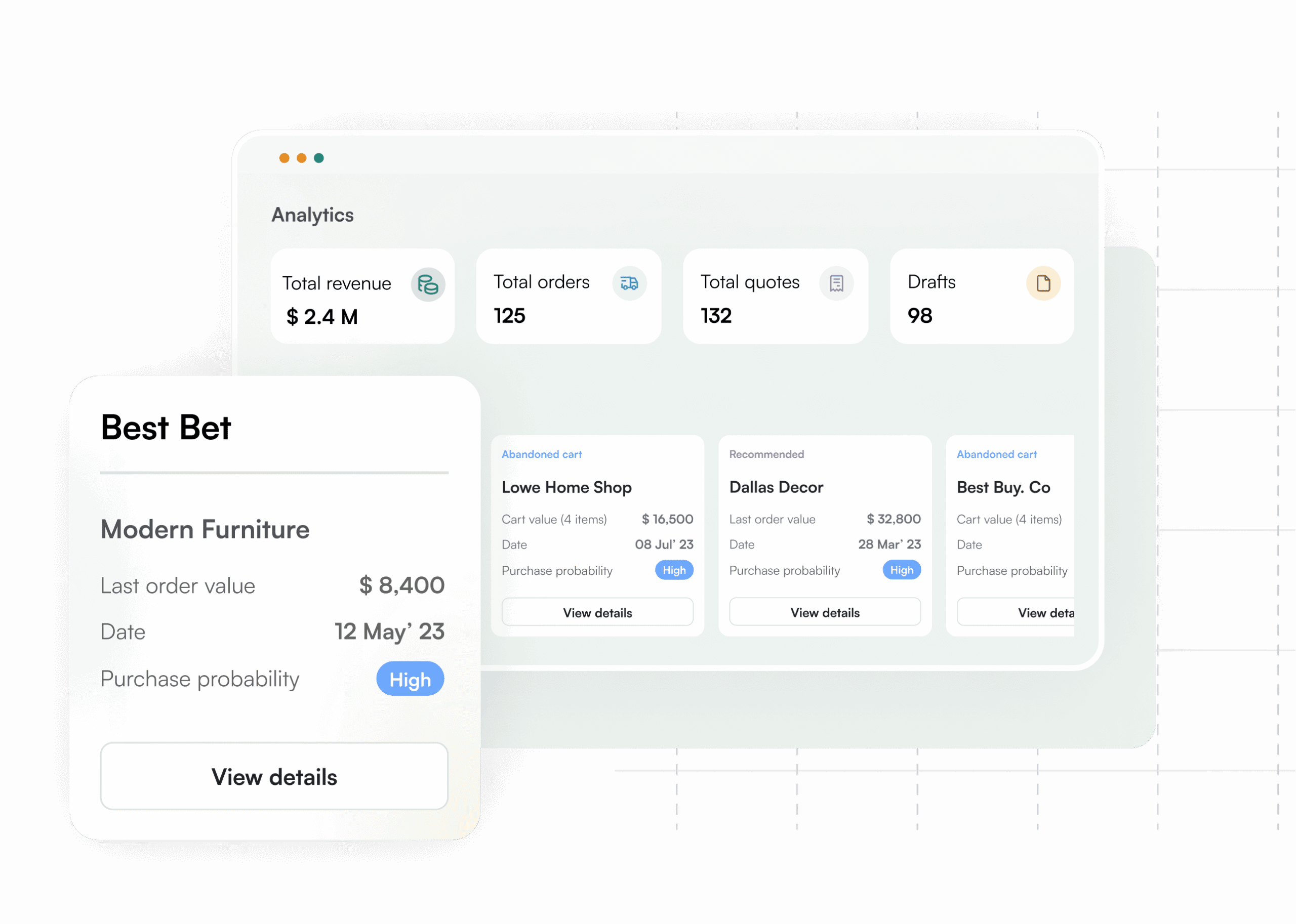 This information is matched with client data and assigned a lead score. Based on the score, your sales team receives recommendations within the app about which clients are likely to close when!