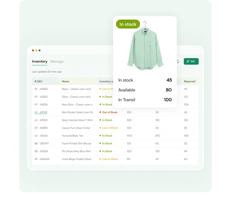 Get up-to-date information on stock quantity, prices, variants, and other details from an inventory that is auto-updated with your website or ERP.
