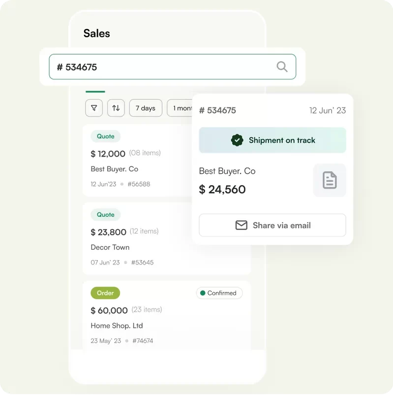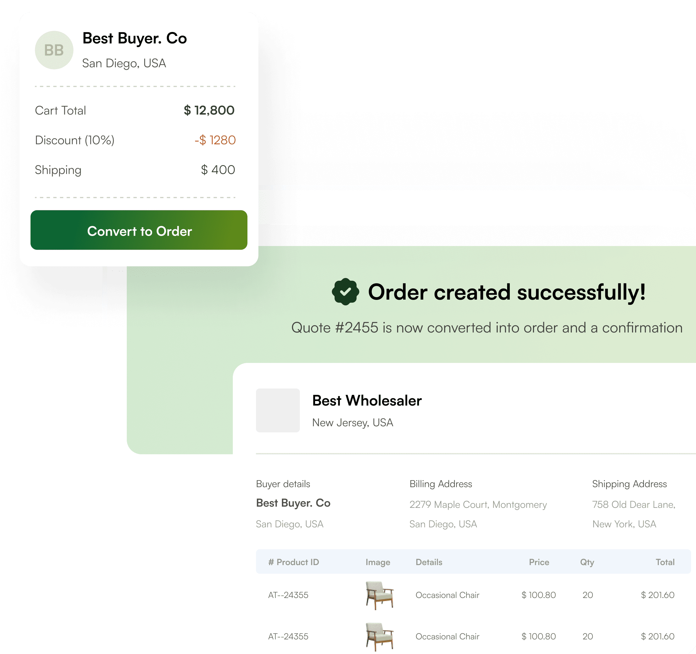 Easily find previously saved quotes or draft carts, of your buyers, and convert them into orders quickly.