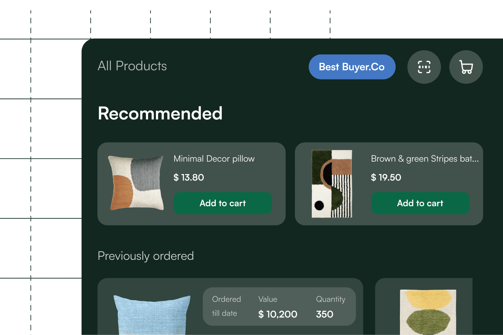 Reps can easily find ‘similar products,’ ‘top recommendations’ personalized for each buyer, and ‘frequently bought together’ products to improve their upsell opportunity.