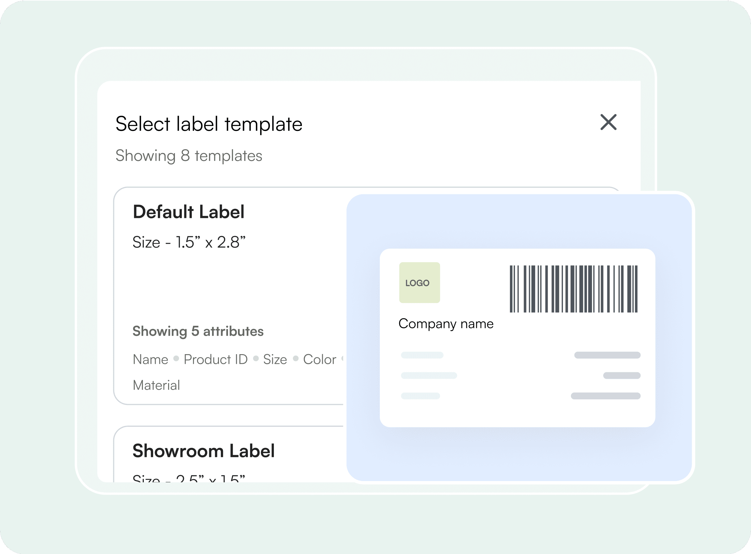 Easily create product labels, barcodes/ QR codes with preferred attributes, sizes, colors, and logos.