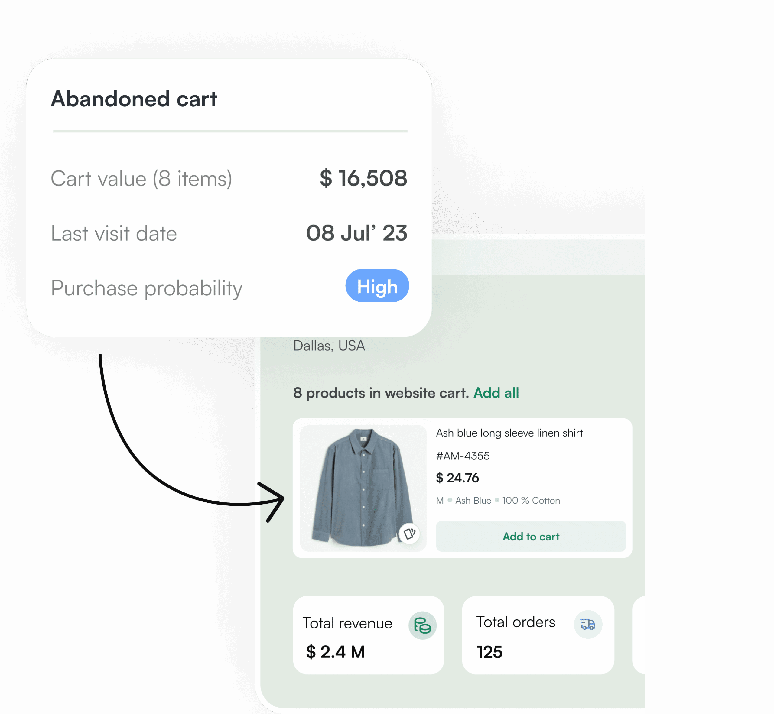 WizAI predicts high-intent buyers with 70%+ accuracy, helping sales reps focus on closing deals. Identify cart abandoners and proactively follow up to boost lead conversion.