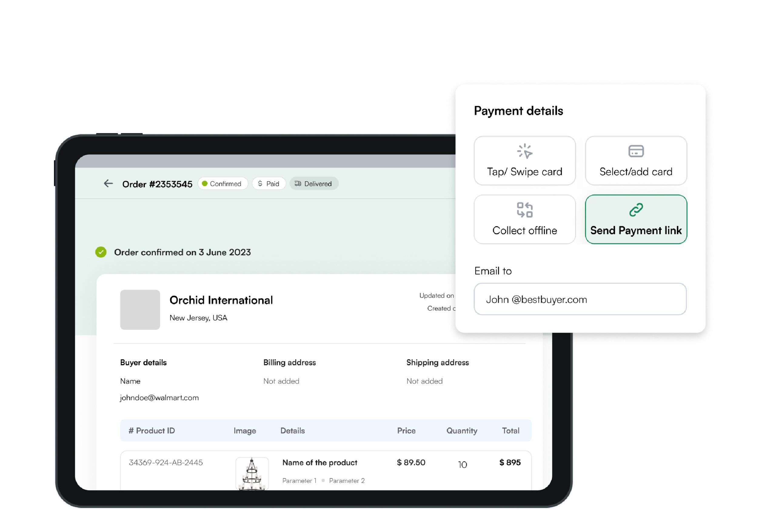 Place an order in WizCommerce, and send your customers a payment link via email. Your customers don’t need an app or website to pay you!