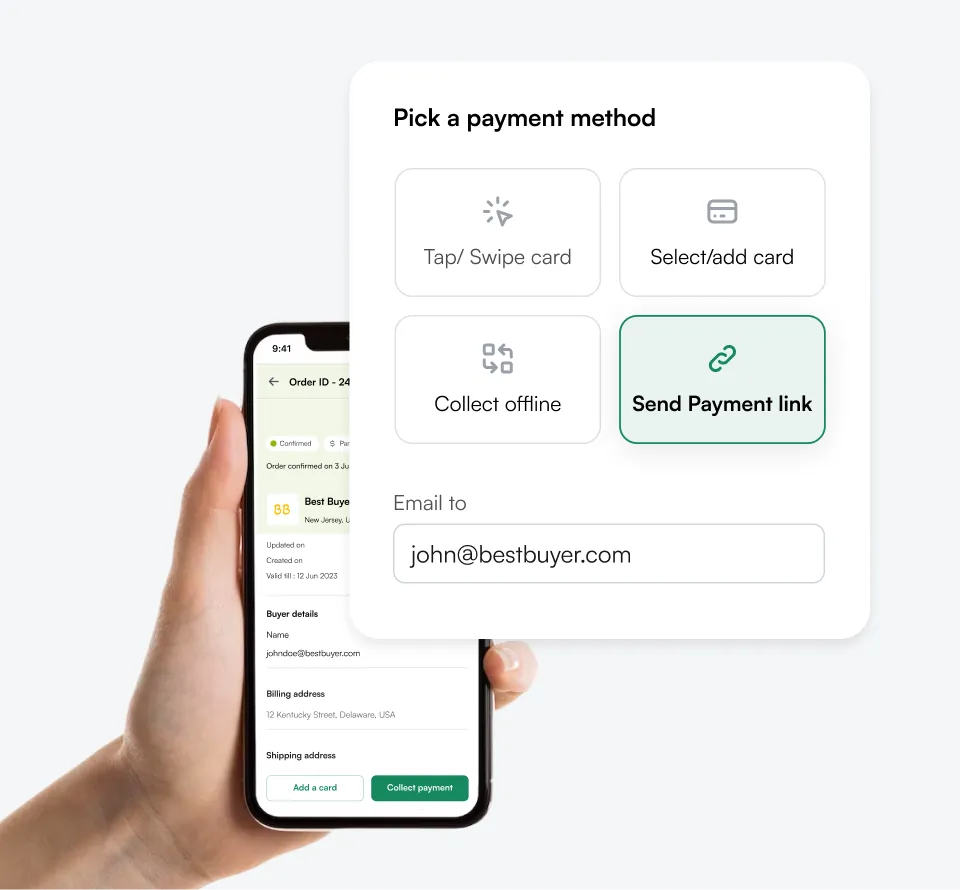 Email your customers a payment link directly, streamlining your B2B transactions and enabling hassle-free online payments.