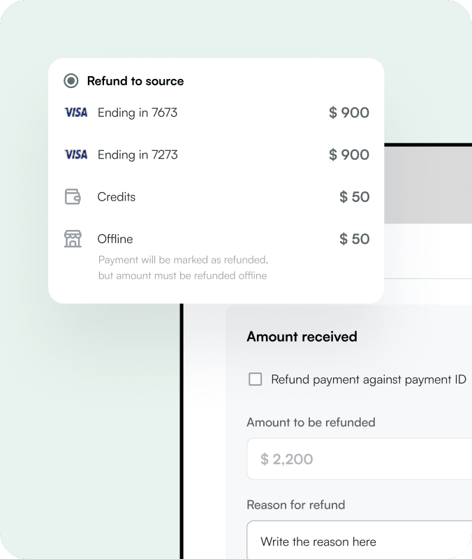 Easily handle full or partial refunds for returned items, either returning the money to the buyer or storing it as credits for future orders, optimizing your payment flow.